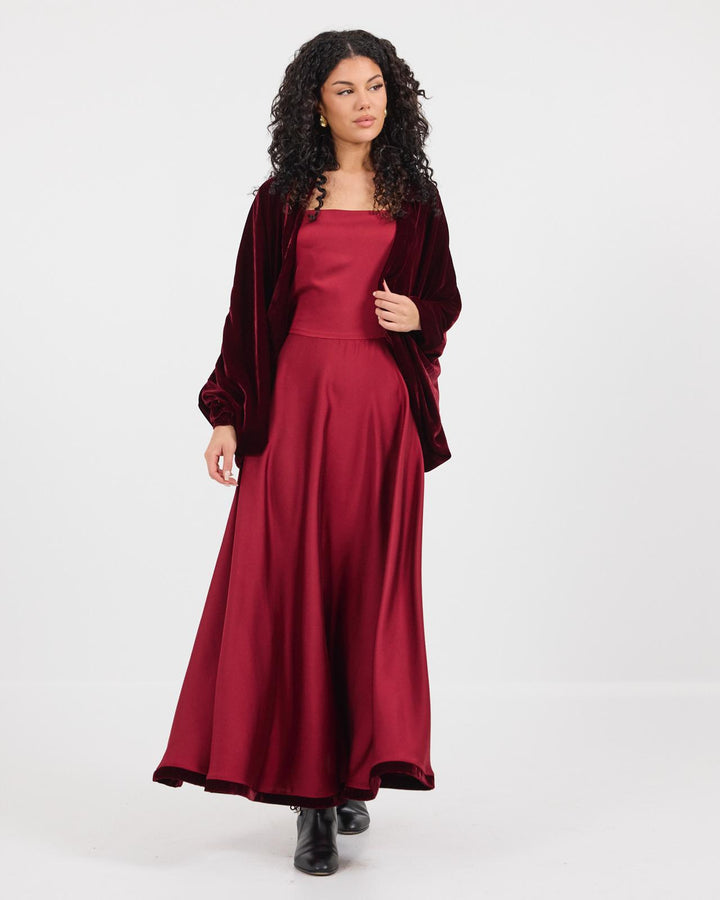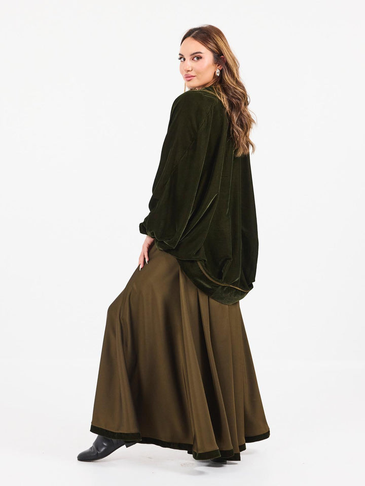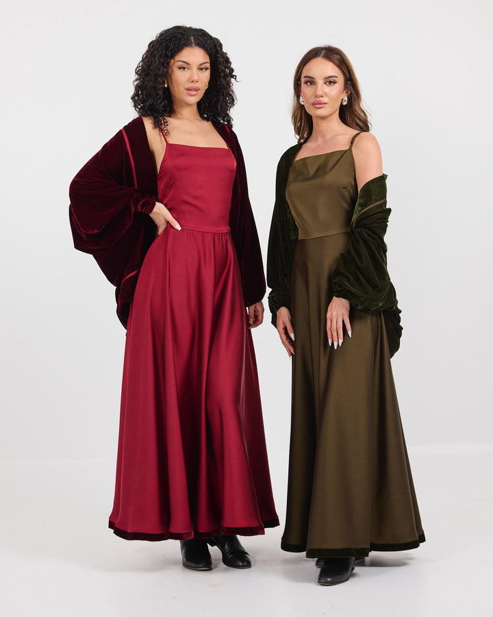 Two pieces kaftan set featuring Valvet cape with silk inner dress.