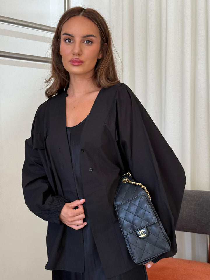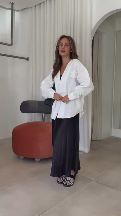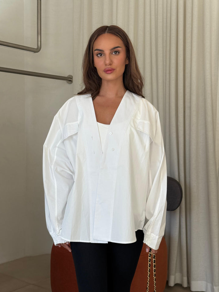 An oversized white shirt crafted from premium fabric, combining timeless elegance with modern versatility. Perfect for layering or wearing solo, it’s a must-have piece that elevates every look.
