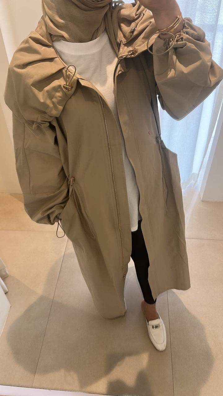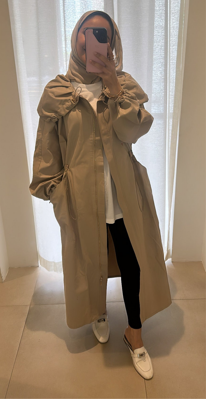 “Limited edition beige trench coat featuring a relaxed silhouette, adjustable details, and lightweight fabric — designed for effortless layering and timeless appeal.”