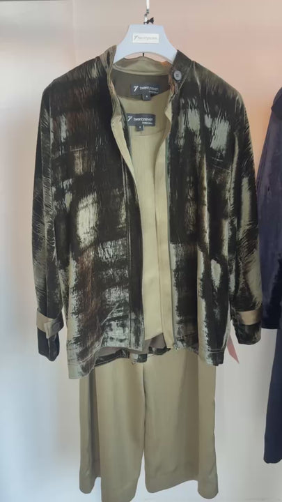 A modern, elegant three-piece set made from velvet and silk, offering a soft, luxurious feel. Perfect for everyday and casual wear, combining comfort with timeless styl