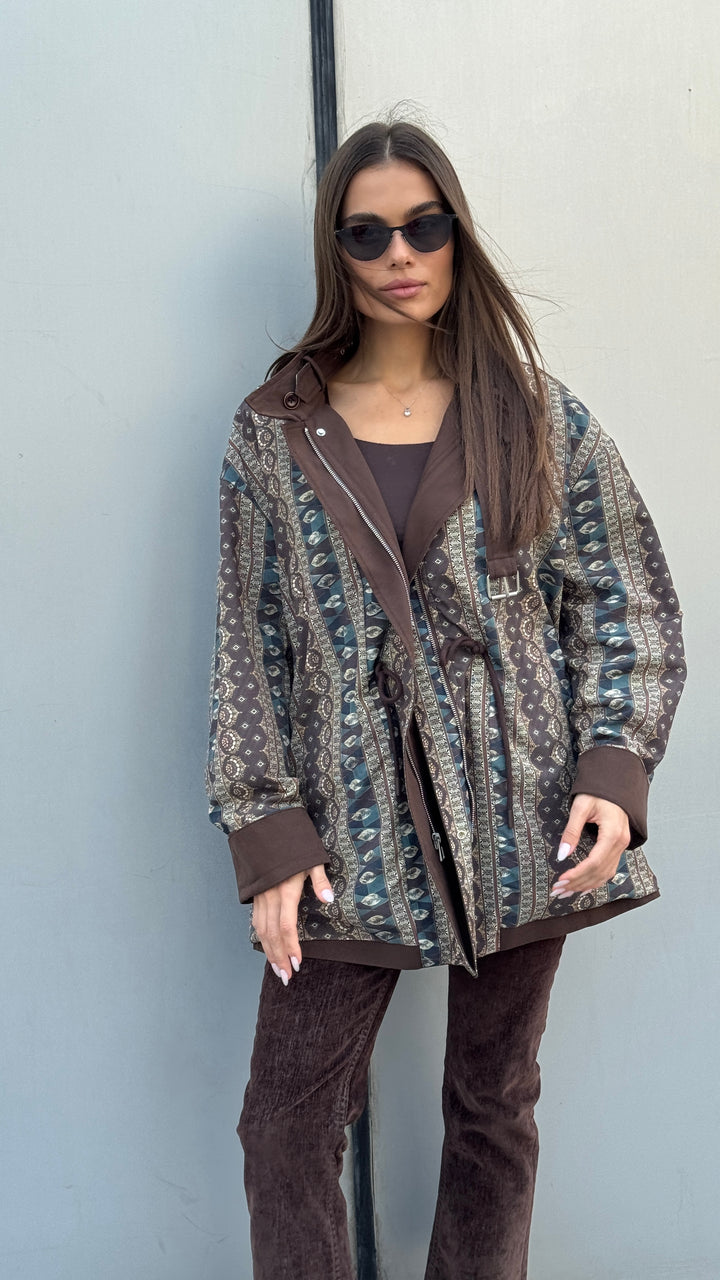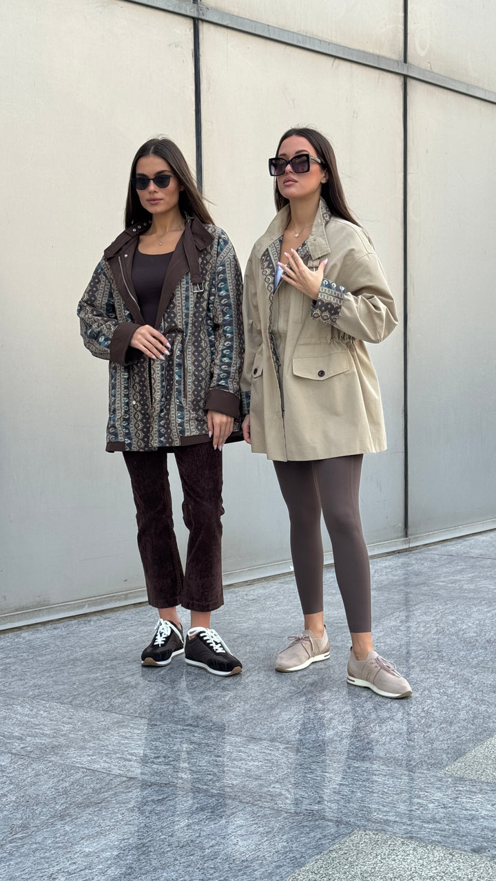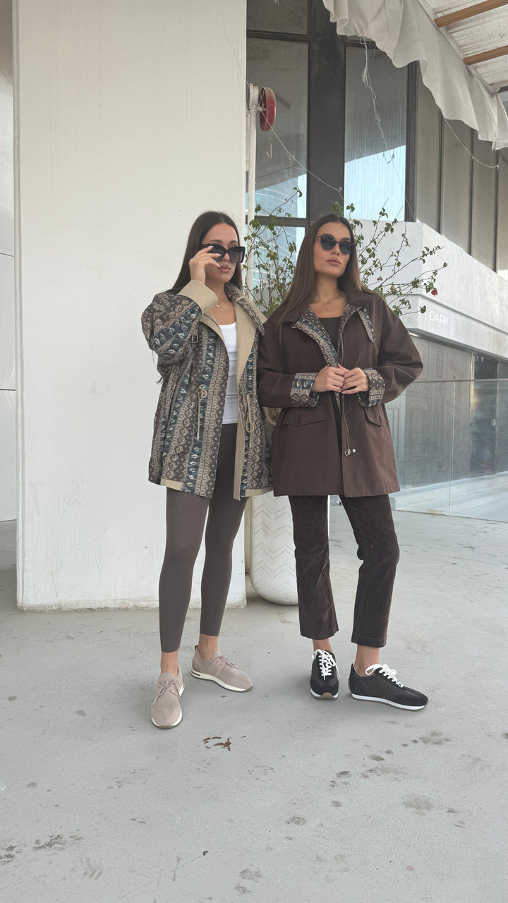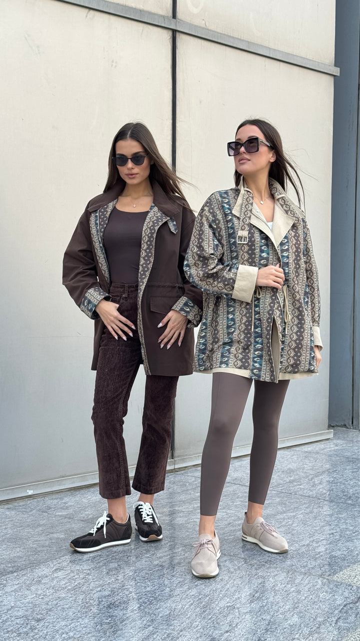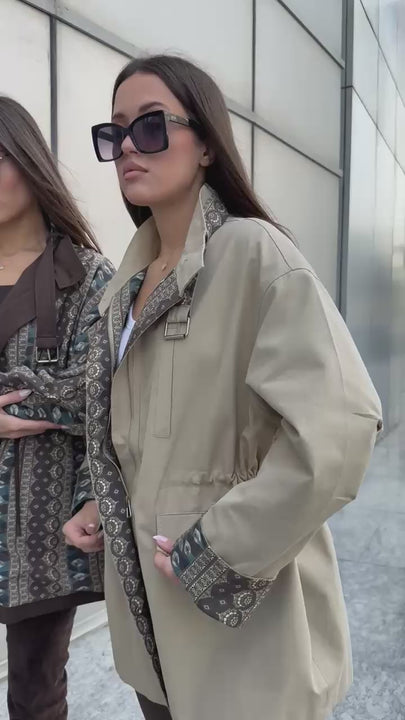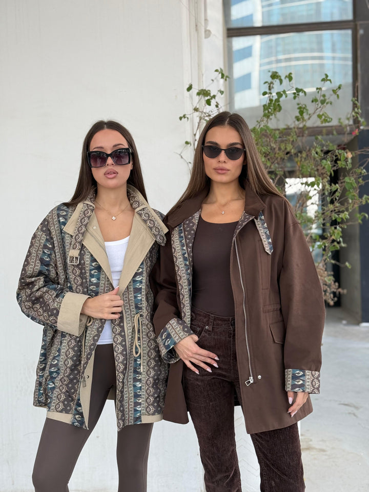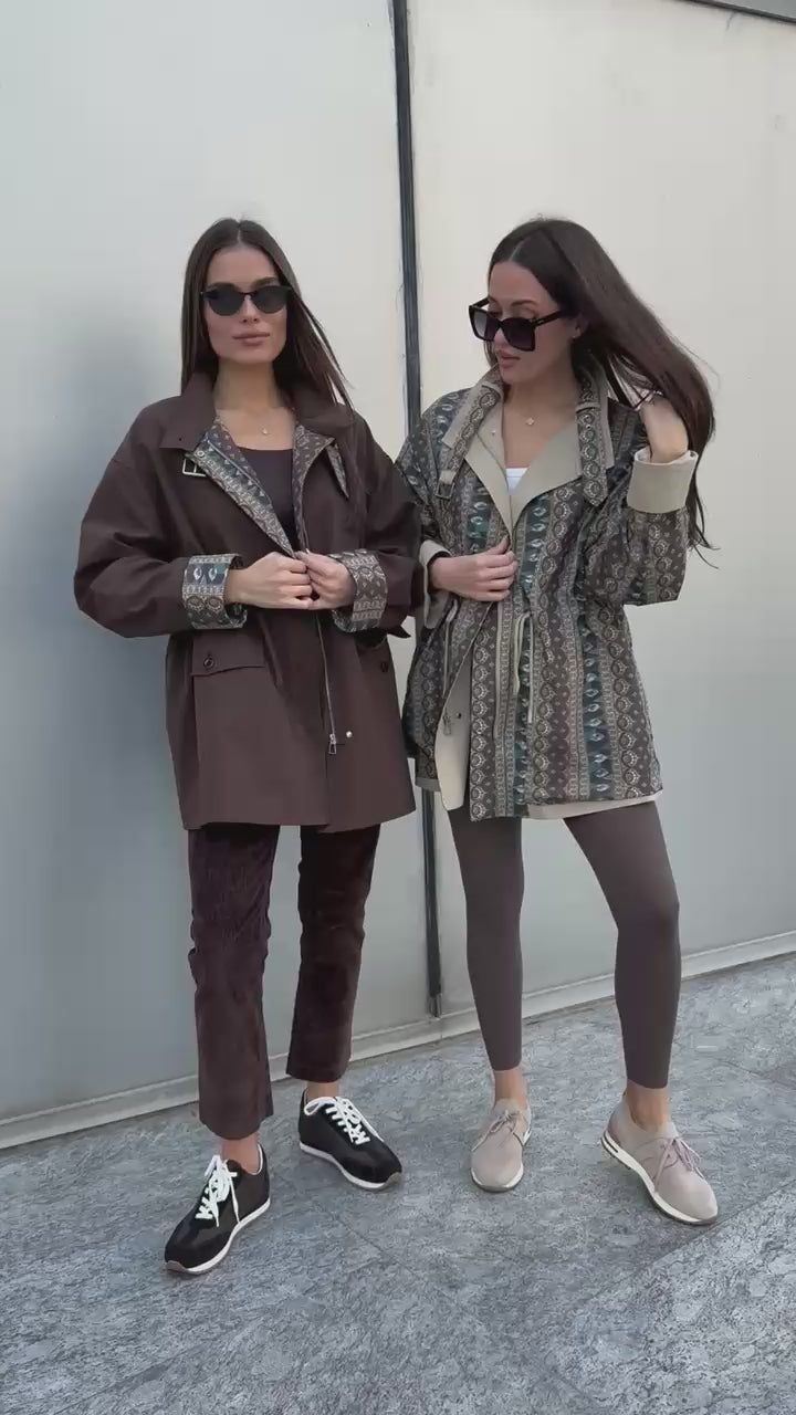 “This jacket features a stylish oversized cut with beautifully detailed patterned accents. Designed as a double-face (reversible) piece, it can be worn on both sides—giving you two distinct looks in one versatile jacket. Its relaxed fit and unique prints make it a standout piece for effortless, everyday style.”