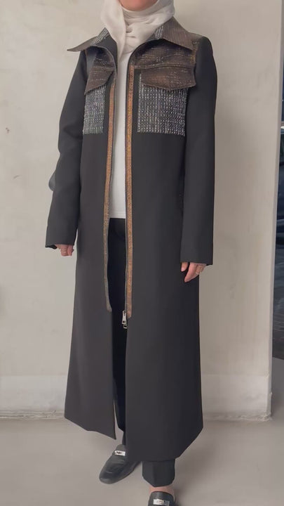 The Golden Jacket features a refined textured fabric with a soft golden hue, offering a balance of elegance and modern design. A timeless piece for sophisticated wardrobes.
