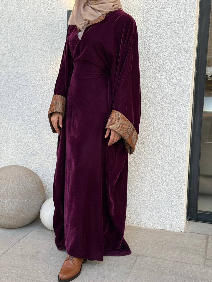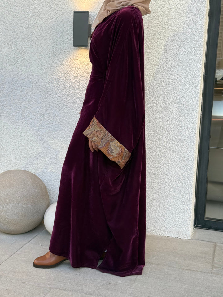 loose oversized velvet kaftan with inner belt. Standard length 58 inch.